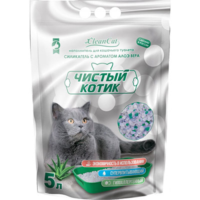 Силикагелевый наполнитель «Чистый котик» с ароматом АЛОЕ ВЕРА - отличается мгновенным и мощным влагопоглощением, а также высокой блокировкой запаха.