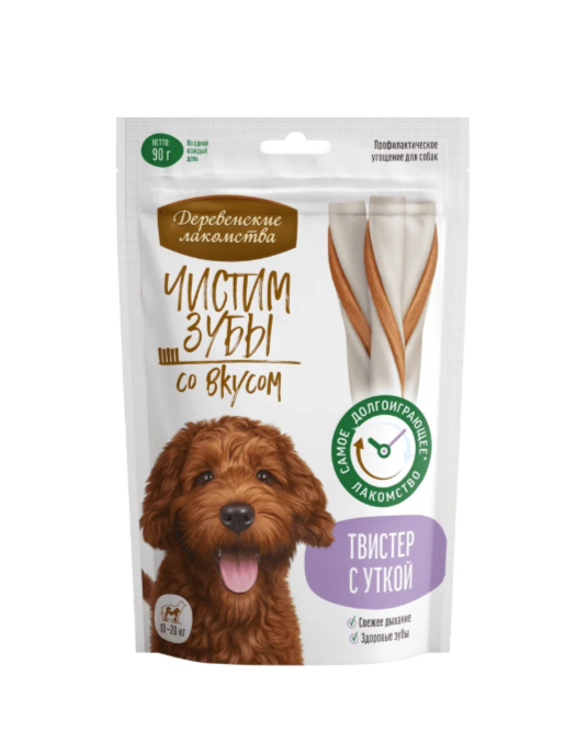 Твистер с уткой для собак мелких пород - наше самое долгоиграющее лакомство. Эффективно удаляет зубной налет, предотвращая образование зубного камня. Мясная начинка приготовлена из отборных ингредиентов и не содержит искусственных консервантов и красителей.