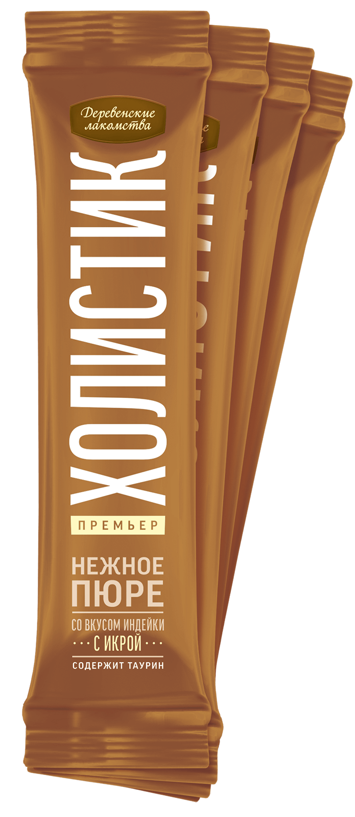 Изысканный десерт Деревенские Лакомства Холистик Премьер, нежнейшее пюре со вкусом индейки с добавлением настоящего деликатеса - икры летучей рыбы