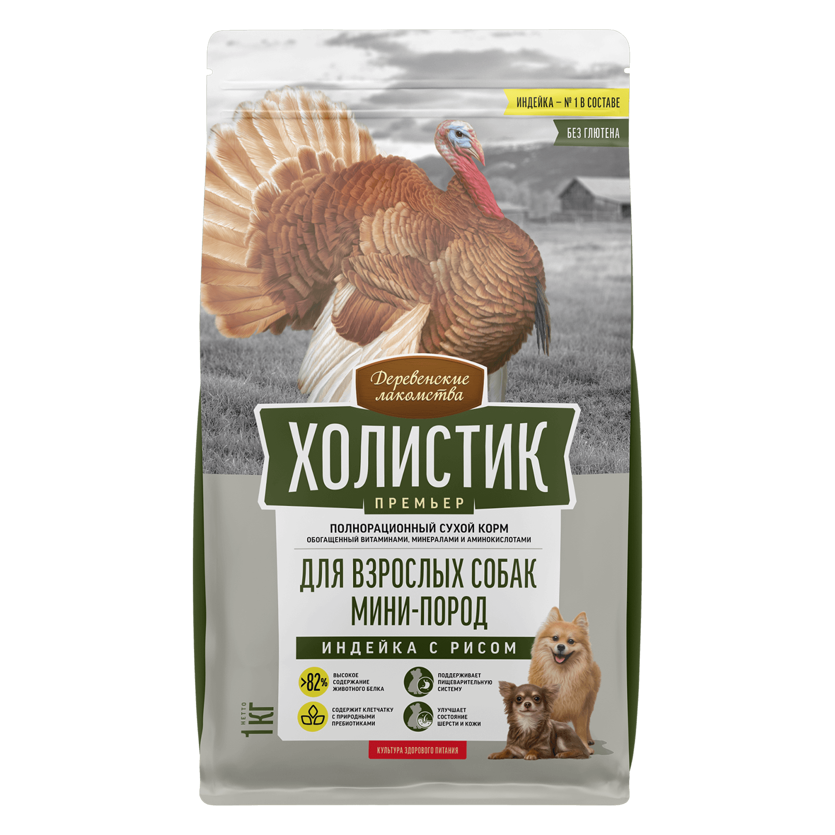 Сухой корм «Деревенские лакомства - Холистик Премьер» для взрослых собак мини-пород "Индейка с рисом" - рецепт здоровья и долголетия питомца!