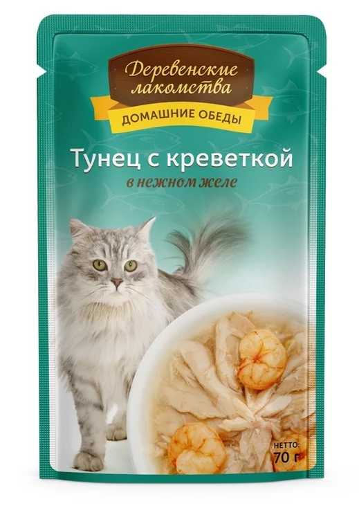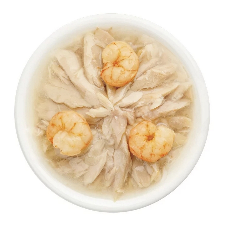 Кусочки тунца с нежными креветками — еда для настоящих аристократов. Витамины, минералы и таурин — это лишь приятное дополнение к изысканному блюду для котов и кошек всех пород.