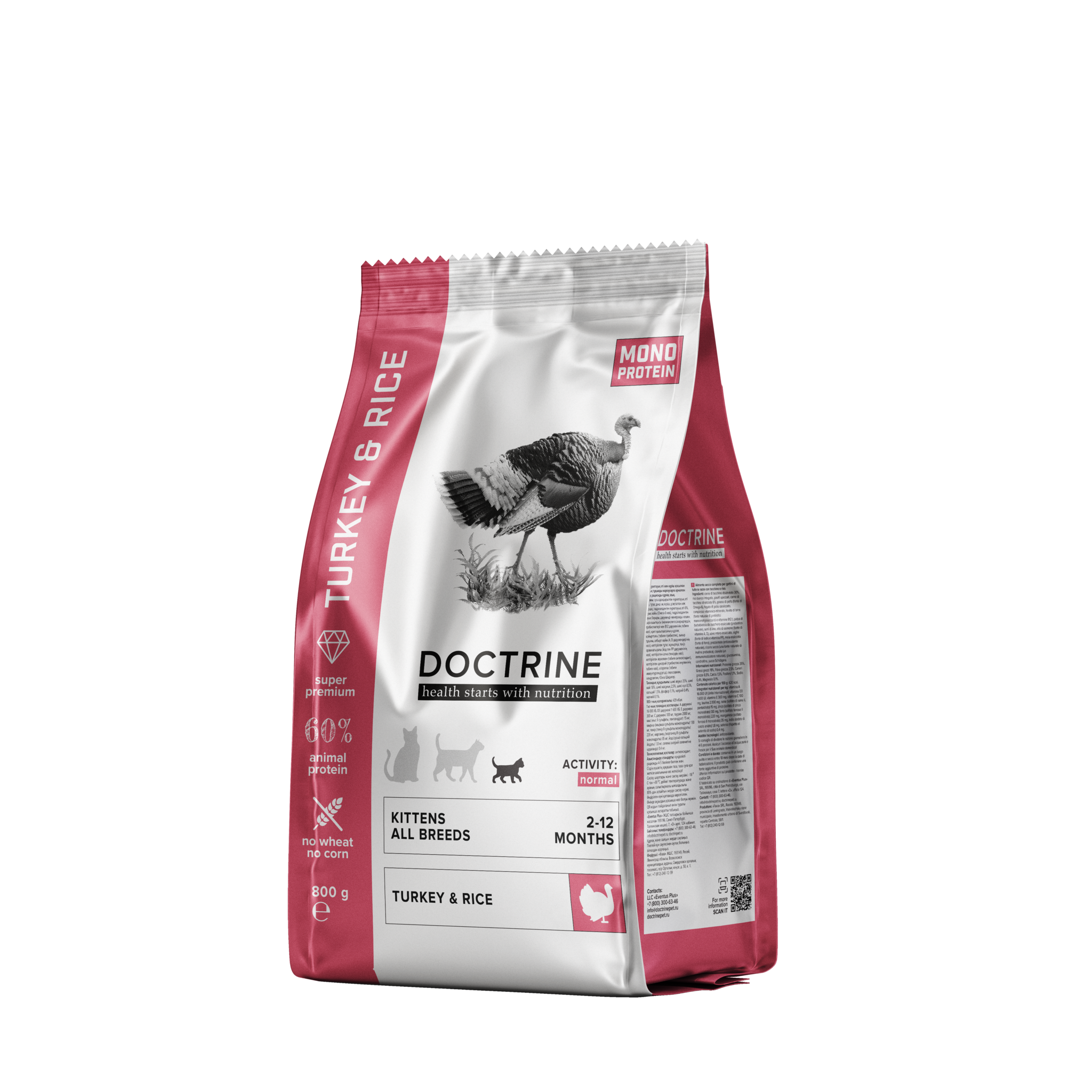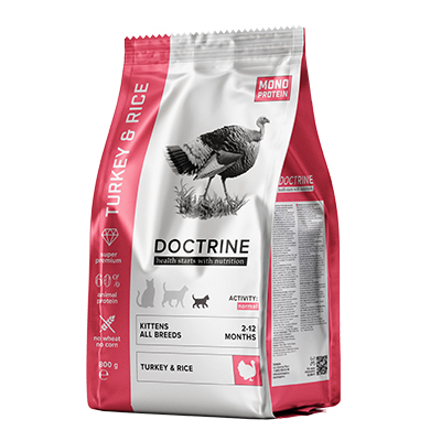 Эксперты Doctrine знают, что здоровье начинается с питания, особенно в раннем возрасте. При поддержке специалистов, мы создали эталонный рацион Doctrine для котят с индейкой и рисом.