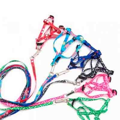 Комплект для включает изящную шлейку и яркий поводок, изготовленные из качественного капрона с использованием металлической и пластиковой фурнитуры. Регулируемая шлейка с металлическими заклепками и надежной пряжкой обеспечат комфортную фиксацию изделия на теле животного без причинения вреда. Поводок оснащен специальным карабином, вращающимся вокруг собственной оси во избежание запутывания поводка на прогулке. Стойкий и насыщенный цвет комплекта не растворяется и не линяет, благодаря чему изделие не потеряет первоначального вида и не запачкает шерсть животного.