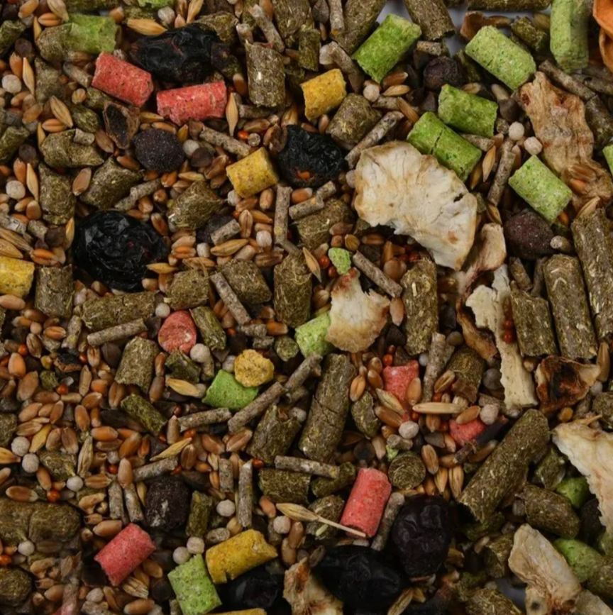 Состав: Травяная гранула, семена злаковых культур, гранулят зерновой, гречиха, кукурузная мука, пшеничная мука, яблоко, просо, плоды шиповника, плоды боярышника, воздушная пшеница, плоды рожкового дерева, топинамбур.