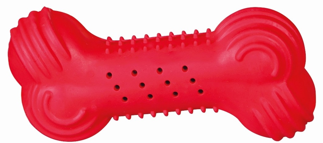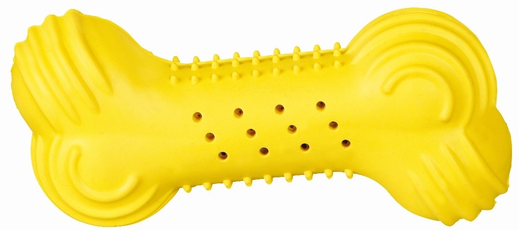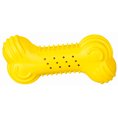 Поверхность игрушки неоднородная и оснащена небольшими шипами, поэтому в процессе игры собака будет массировать десны, мягко очищая их и зубки от налета.