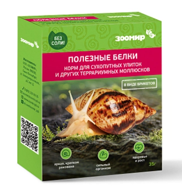 Полноценный корм для регулярного кормления сухопутных улиток: ахатин, архахатин, лимиколярий, мегалобулимусов, виноградных и других улиток и моллюсков, а также мокриц, кивсяков и т.п. Ароматные брикетики, которыми удобно кормить моллюсков, содержат в сбалансированном виде все самое необходимое для здоровья ваших питомцев, особенно для молодых растущих и ослабленных: повышенное количество белков растительного и животного происхождения и биогенный кальций – для правильного развития и укрепления организма, отборные травы, овощи и злаки – основные составляющие рациона, спирулину – богатый источник аминокислот и витаминов.